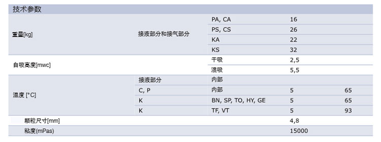 | 自吸高度 | dry 3,7 m WC; wet 6,4 m WC | |
