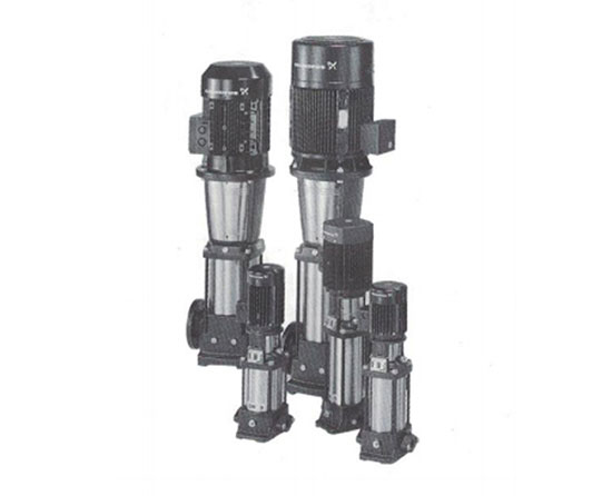 垂直多級離心泵,吸入口和排出口處于相同水平。 該泵壓頭和底座均為鑄鐵制。 所有其他與液體接觸的部件為不銹鋼材質。