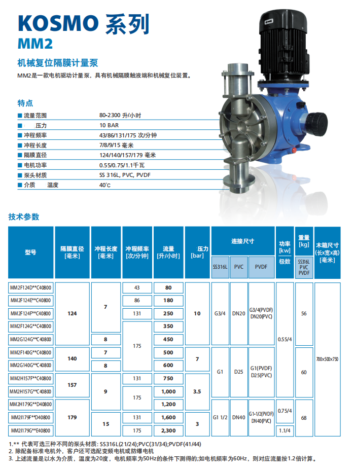 (SEKO賽高) MM2系列PVC/PVDF/不銹鋼泵頭大流量機械復位隔膜計量泵