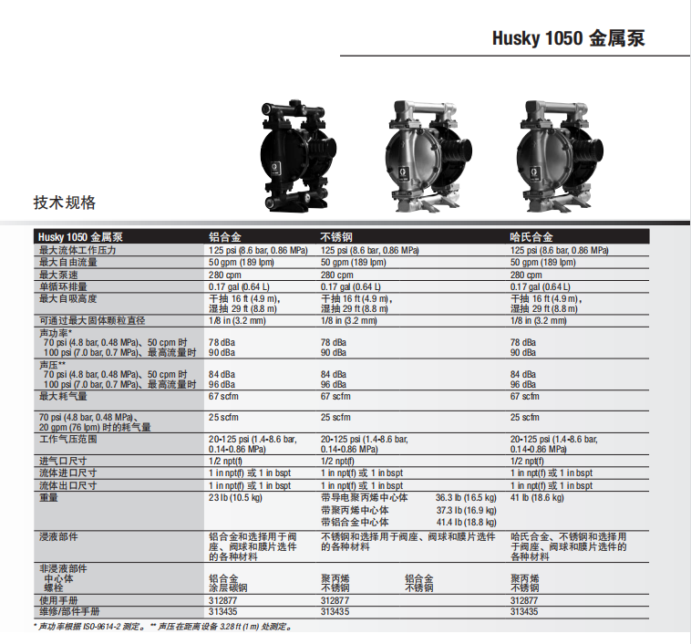氣動(dòng)隔膜泵 Husky 1050 金屬泵
