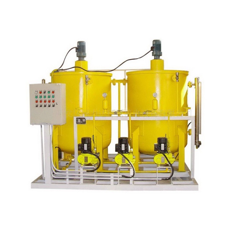 加藥裝置,通過不同的工藝設(shè)計,配置各類固體和液體的化學(xué)藥品的溶液,再用計量泵準(zhǔn)確投加,以達(dá)到各種設(shè)計要求。如除垢、除氧、混凝、加酸、加堿等。加藥過程可手動操作,也可通過PC機(jī)、磁翻板液位計、PH計、行程控制器、變頻器等各種電器、儀表、使加藥裝置成為機(jī)電一體化產(chǎn)品、實現(xiàn)自動控制。