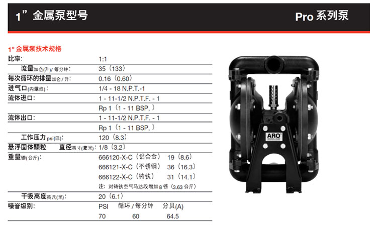 英格索蘭ARO氣動隔膜泵666120-144-C隔膜泵鋁合金管道泵