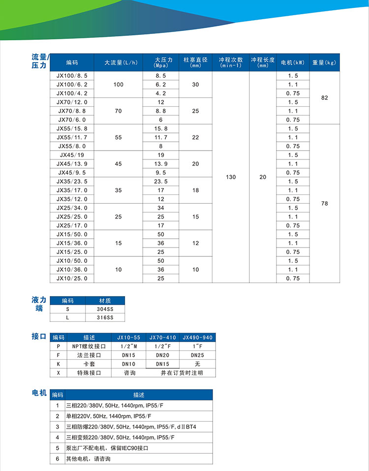 (南方)柱塞式計量泵JX10/50.0