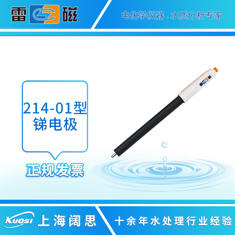 214/214-01銻電極:銻電極不受氫氟酸腐蝕,一般測量含有氫氟酸溶液的pH值時常采用銻電極。