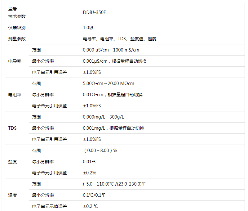 便攜式電導率DDBJ-350F技術參數