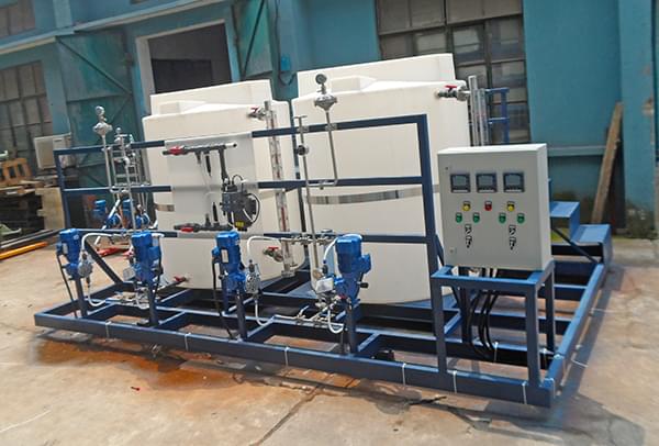 配置:該加藥裝置由計量泵、控制系統(tǒng)、流量計、變頻器、標定柱、背壓閥、安全閥和不銹鋼管道組成。描述:該加藥裝置由主要用于造紙行業(yè)投加各種膠劑。為了保證系統(tǒng)24小時正常運行,該裝置使用一用一備的組合形式,為了管道使用壽命更長,所以管道均采用SS304材質及氬氟焊焊接技術。因造紙行業(yè)各階段的工藝不同,控制需要了解設備的運行狀態(tài)以及當前流量,從而更的投加藥劑。該加藥裝置主要用于造紙行業(yè),以及需要DCS控制的加藥系統(tǒng)。