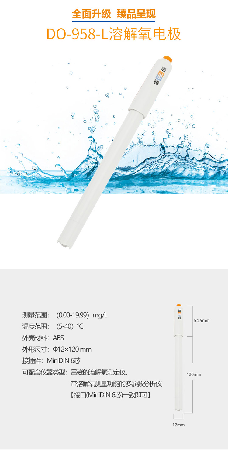雷磁溶解氧電極DO-958-L 實驗室電極傳感器探頭ABS外殼材質