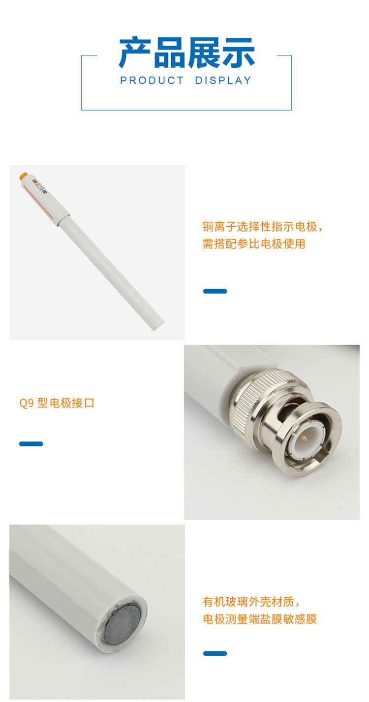 雷磁PCu-1-01型銅離子電極 實驗離子選擇性電極 傳感器探頭