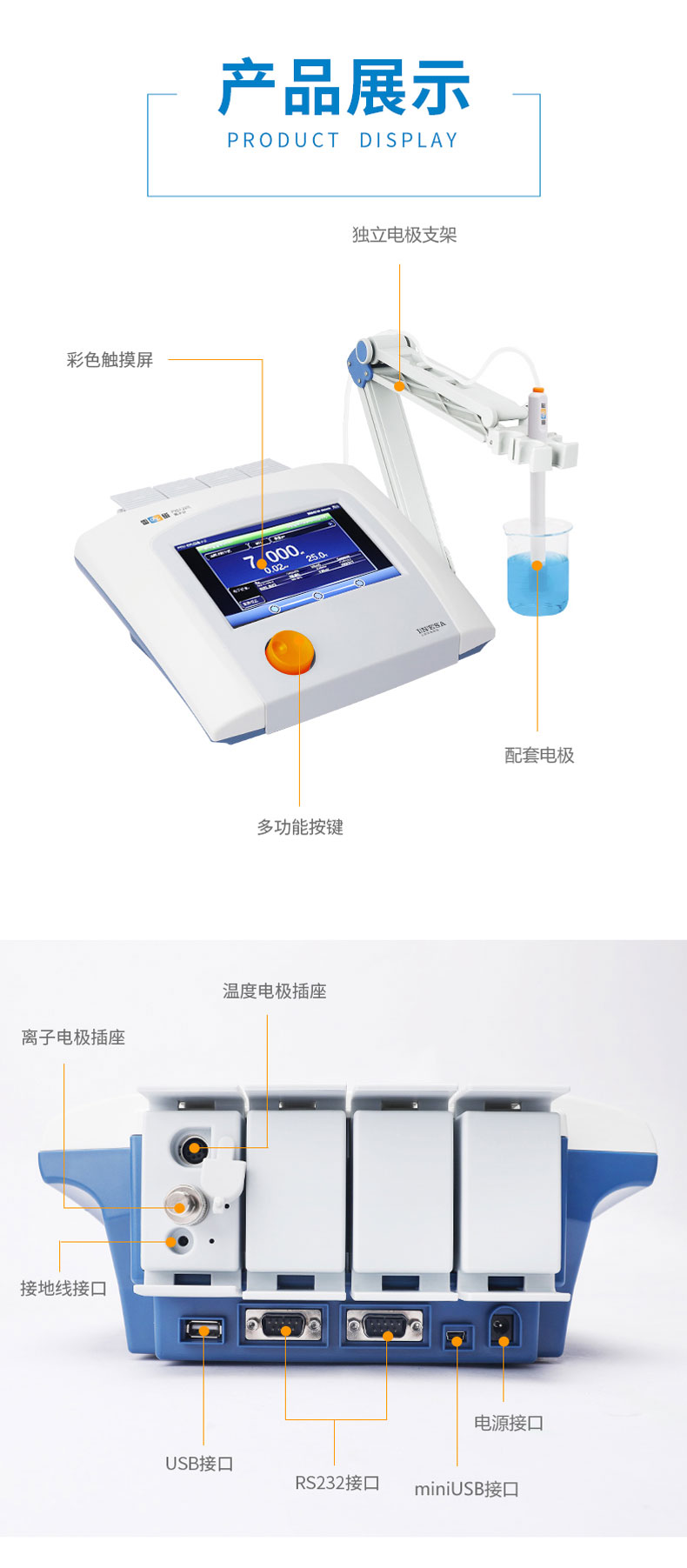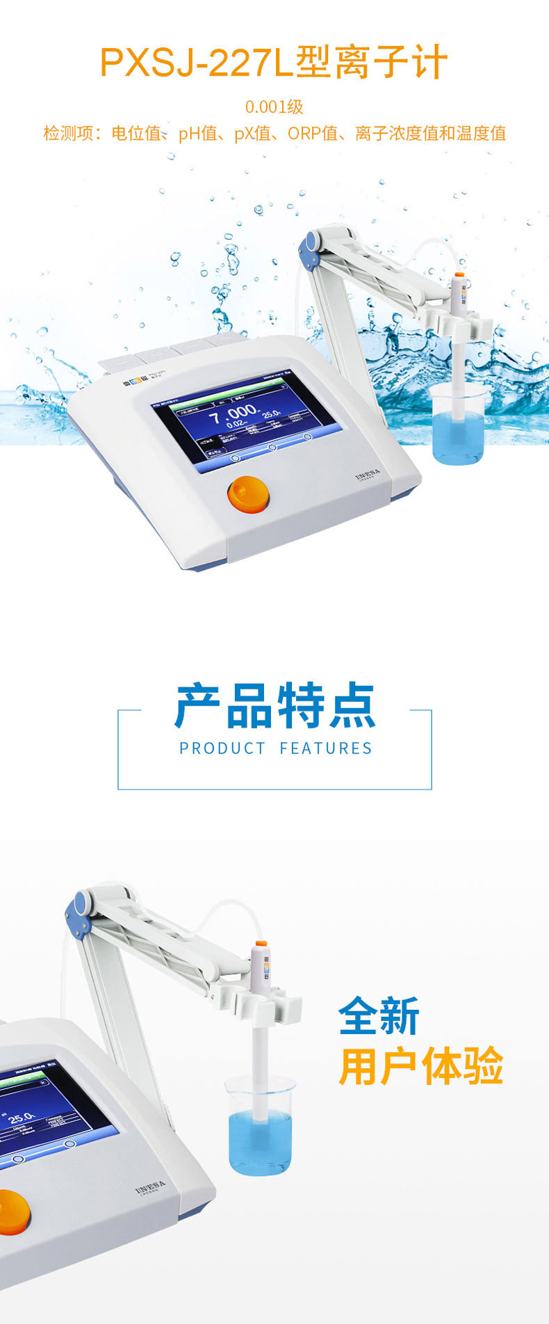 雷磁(leici)PXSJ-227L型離子計水質(zhì)分析儀液晶顯示屏中英文操作自動溫補(bǔ)