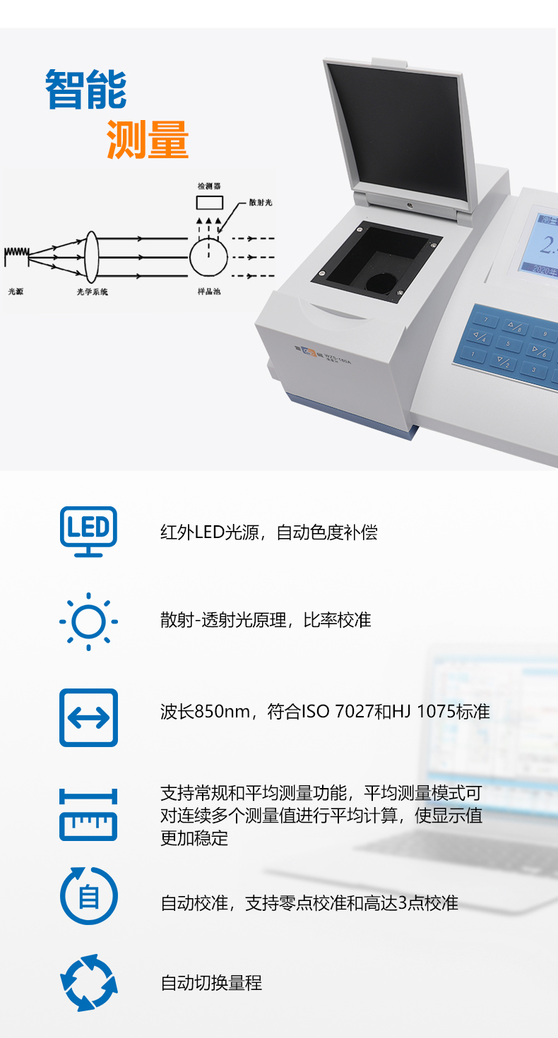 雷磁(leici)WZS-180A型濁度計標(biāo)配水質(zhì)分析濁度儀LED光源自動色度補償
