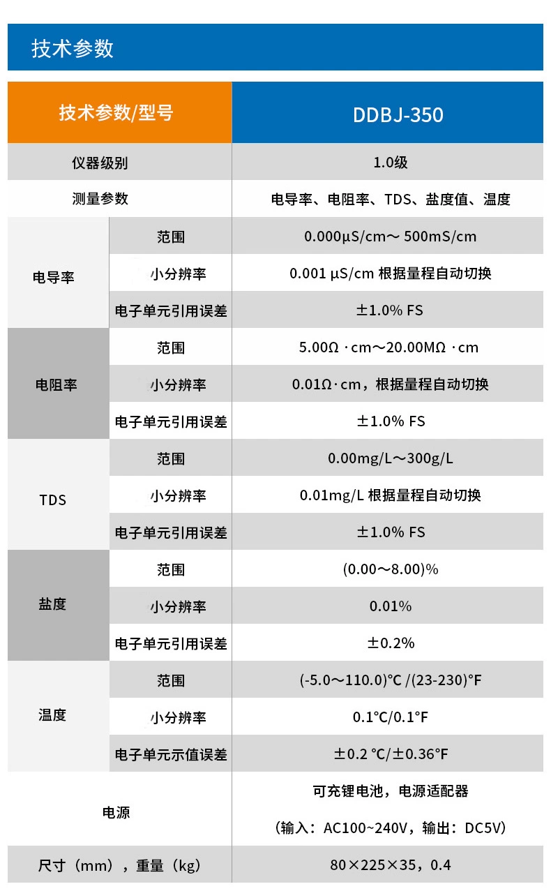 (雷磁)DDBJ-350F便攜式電導率儀液晶觸摸屏電導率測試儀檢測儀