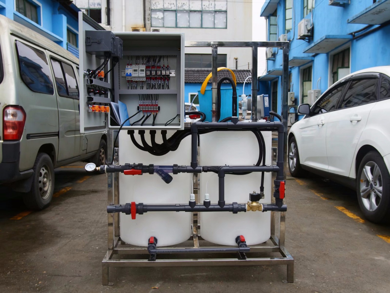 配置:該加藥裝置由計(jì)量泵、控制系統(tǒng)、流量計(jì)、變頻器、標(biāo)定柱、背壓閥、閥和不銹鋼管道組成。