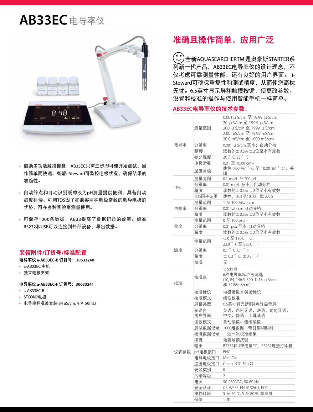 奧豪斯電導(dǎo)率儀AB33EC實(shí)驗(yàn)室電導(dǎo)率測(cè)試儀AB23EC數(shù)顯電導(dǎo)率分析儀