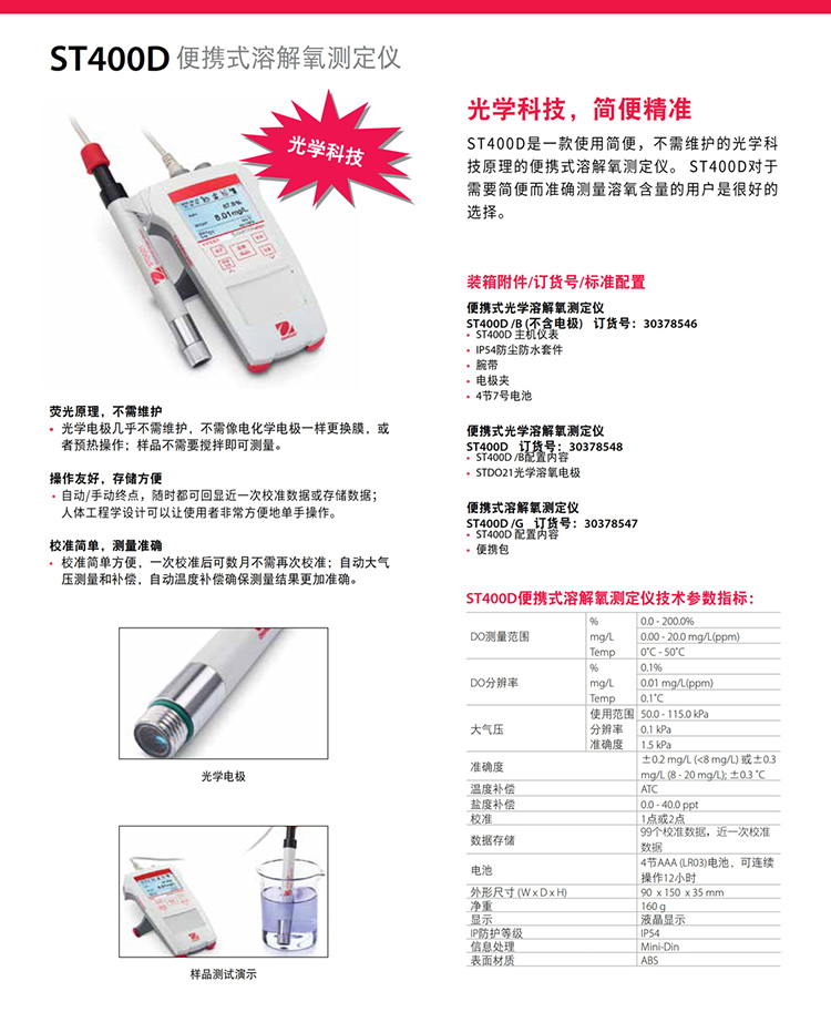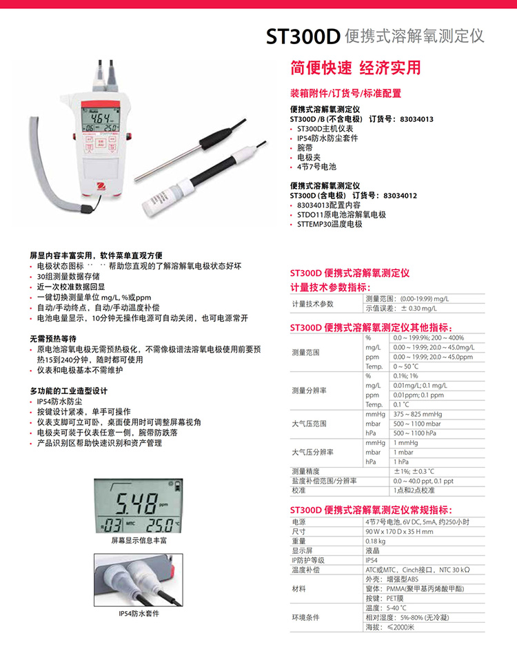 奧豪斯便攜式溶解氧測定儀ST300D/400D防水防塵工業在線do溶氧儀