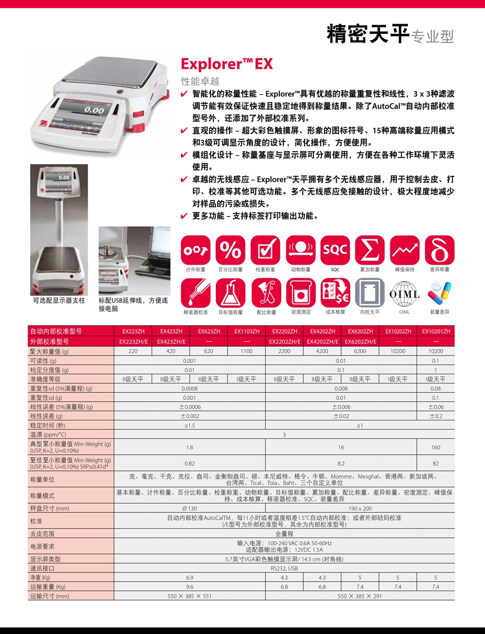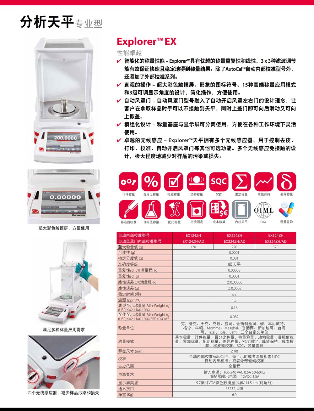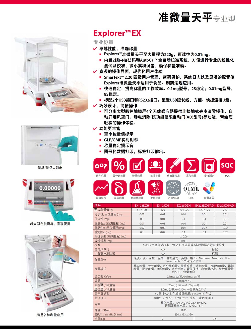 奧豪斯ExplorerEX系列分析天平實驗室電子稱準微量精密大稱量天平
