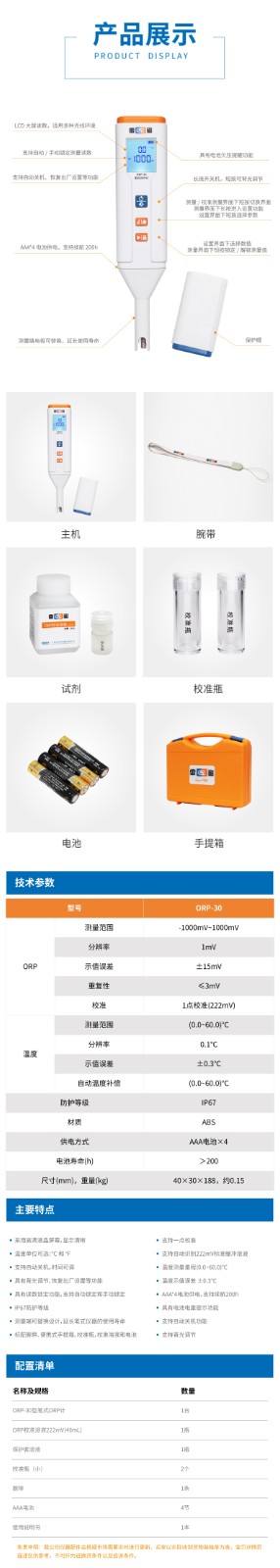 【雷磁】筆式ORP計(jì)水質(zhì)檢測(cè)儀ORP-30