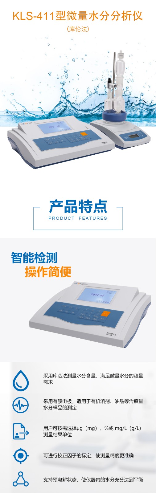 【雷磁】庫倫法滴定儀KLS-411微量水分測定儀