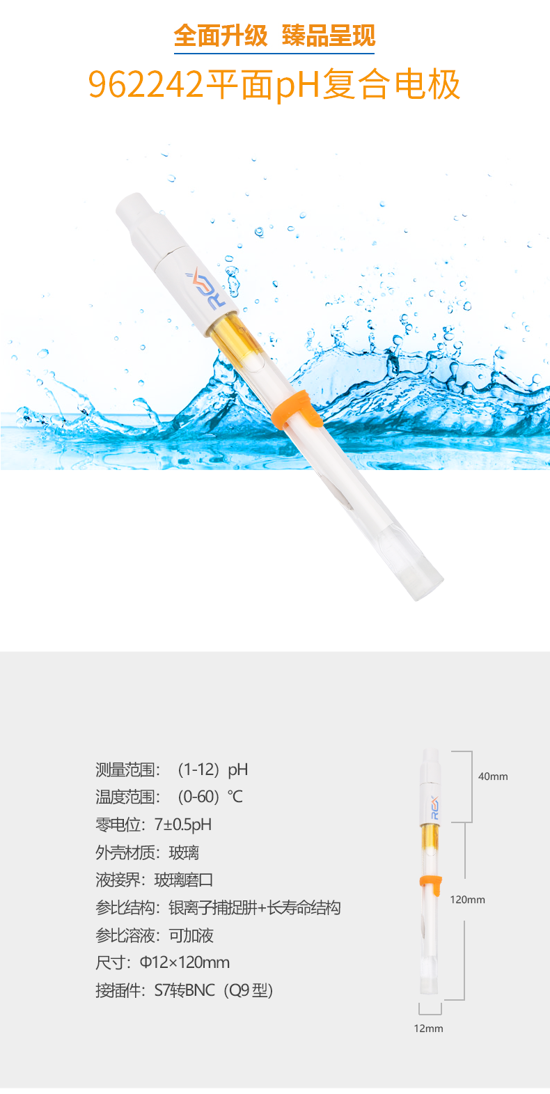 【雷磁】雷磁高端ph電極高精度 962242平面ph復(fù)合電極