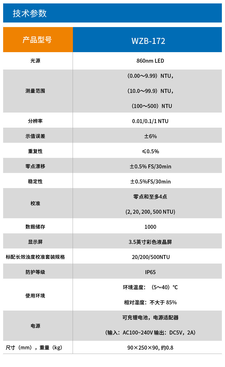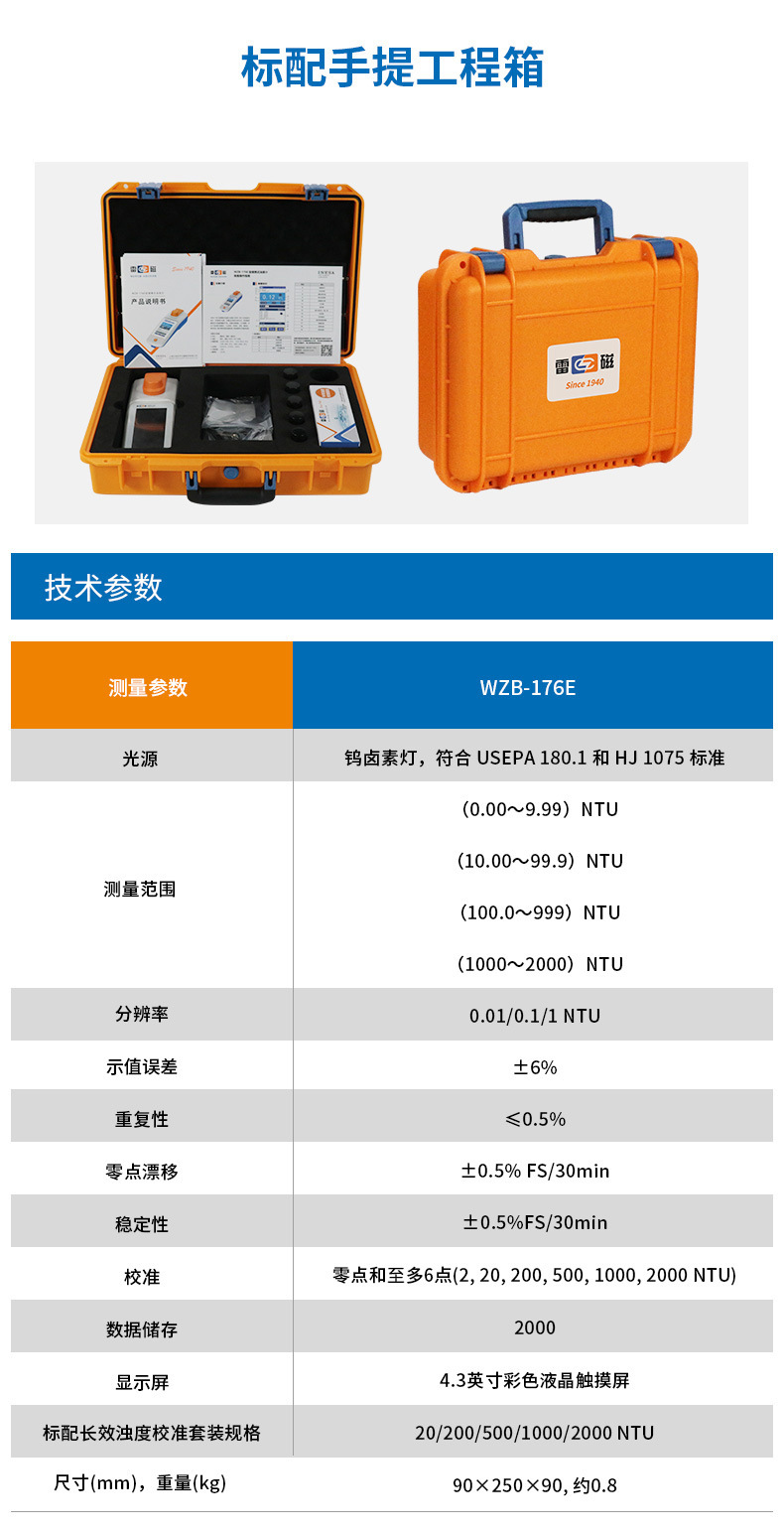 雷磁 WZB-172/175/176E 工業級便攜式濁度檢測儀數顯水質分析儀器