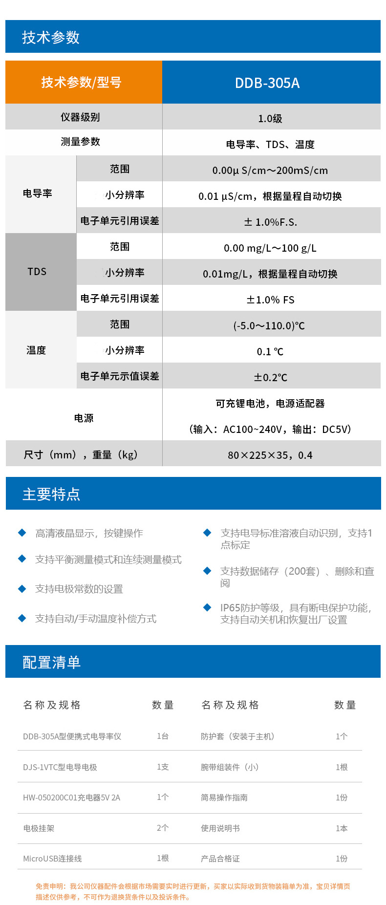雷磁DDB系列便攜式電導率儀 303A/305A數顯電導率測試儀