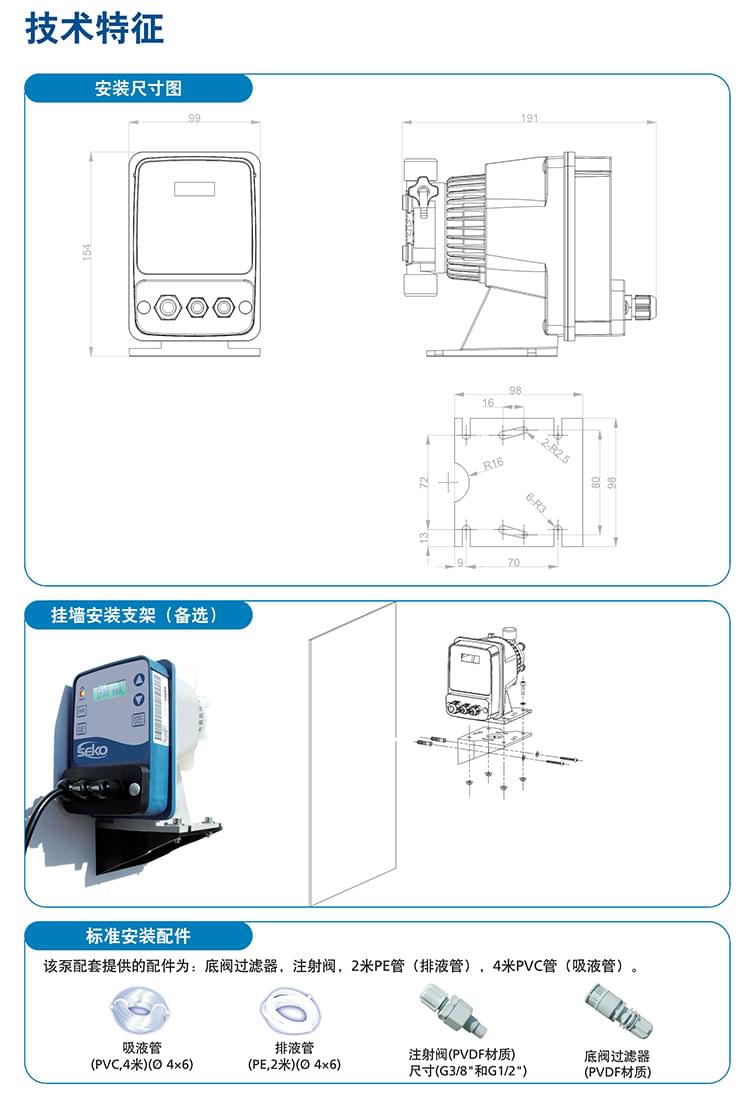 PVDF泵頭和陶瓷球閥為泵的標(biāo)準(zhǔn)配置