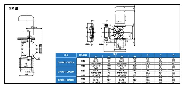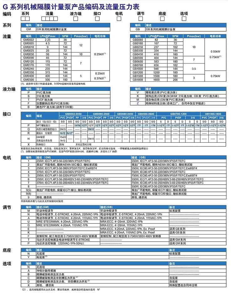 米頓羅GM系列機械隔膜計量泵型號表: