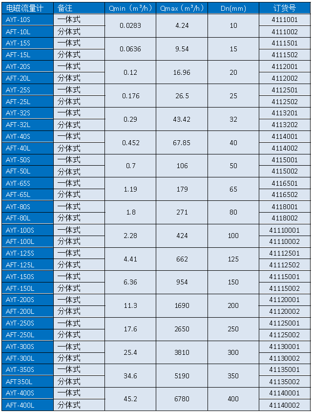 ■【一體式電磁流量計】電磁流量計APURE電磁流量計選型表