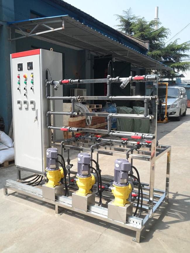 循環冷卻水,冷凍水根據不同循環比例、控制方式可實現定時定量加藥、遠程數據控制加藥,三種藥劑分三通道加藥,每個通道根據不同的時段,不同的藥劑量設置遠程控制加藥。