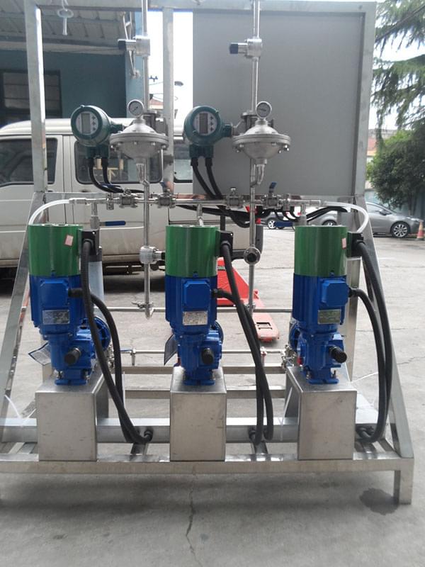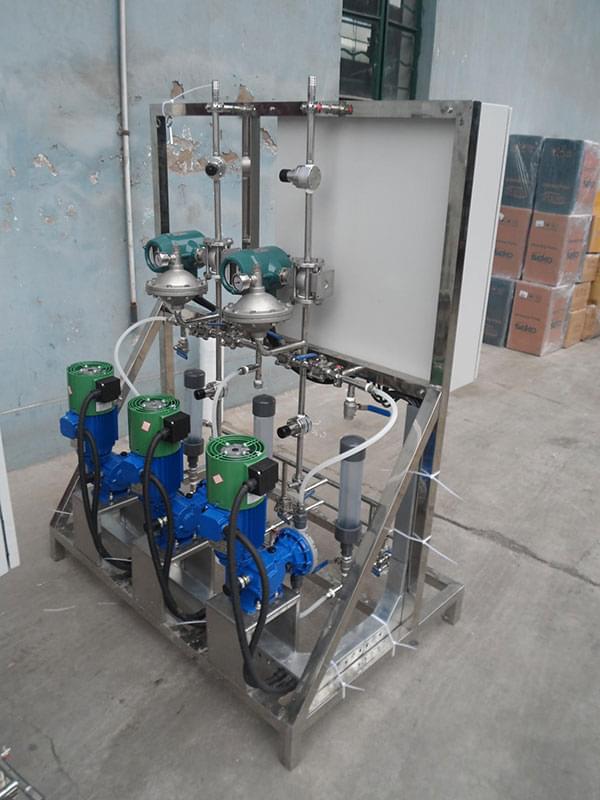 描述:該加藥裝置由主要用于造紙行業(yè)投加各種膠劑。為了保證系統24小時正常運行,該裝置使用一用一備的組合形式,為了管道使用壽命更長,所以管道均采用SS304材質及氬氟焊焊接技術。因造紙行業(yè)各階段的工藝不同,控制需要了解設備的運行狀態(tài)以及當前流量,從而更的投加藥劑。