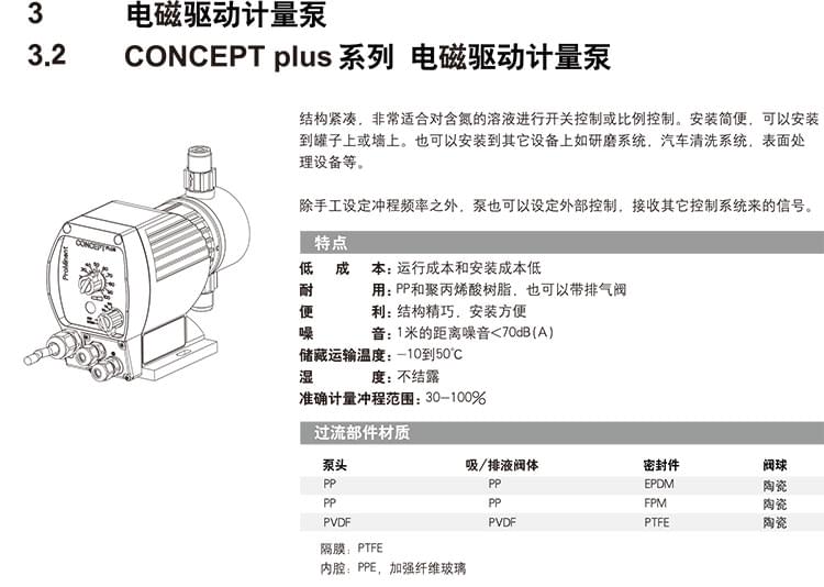【普羅名特計量泵】CONCEPT PLUS電磁隔膜計量泵技術信息