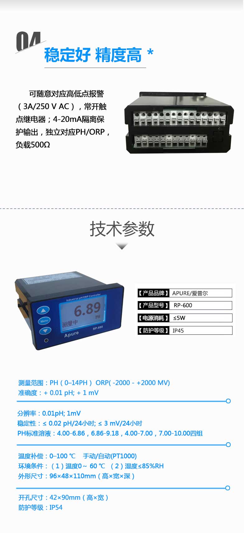 Apure愛普爾RP-600簡(jiǎn)易PH/ORP儀表控制器分析儀工業(yè)在線ph計(jì)