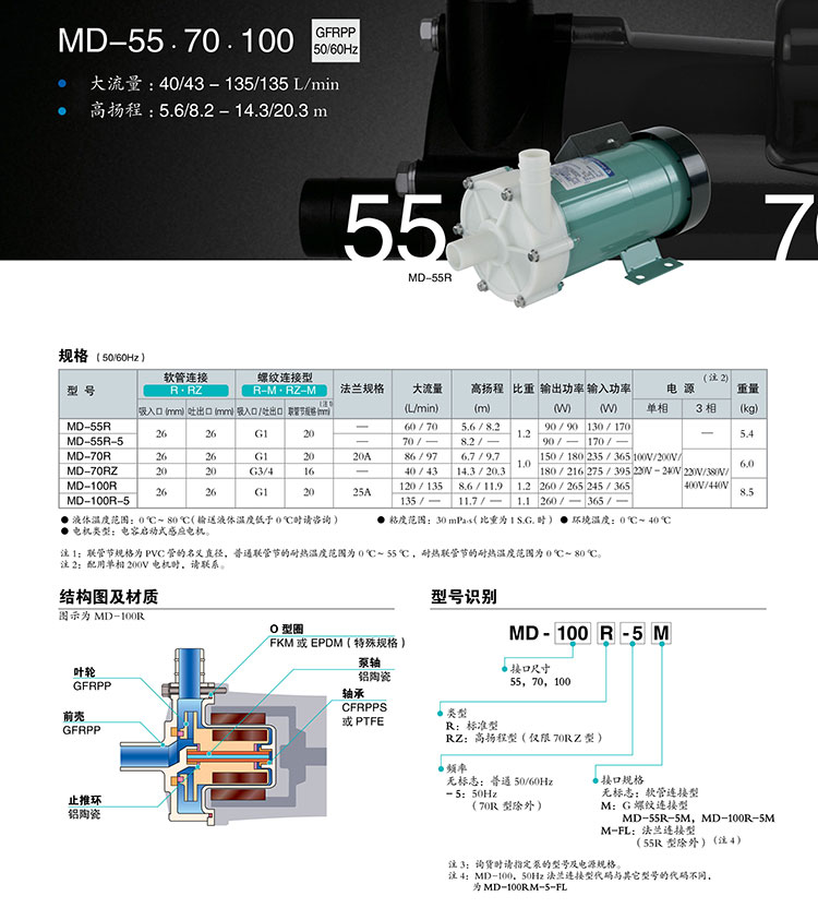IWAKI易威奇磁力泵MD100-RM 過濾機泵 高性能磁力驅動