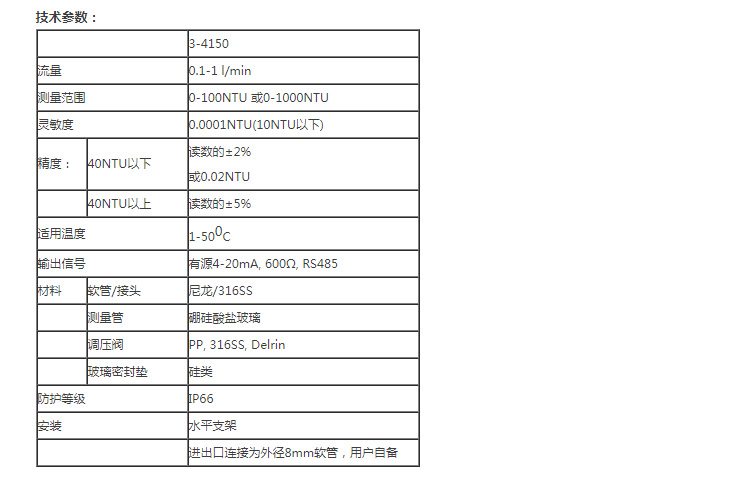 兩種量程可選。0 -100 NTU 型的用于低量程應(yīng)用,如飲用水監(jiān)測。0 - 1000 NTU 型的可用于各種場合,如原水、廢水等。